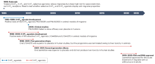 Migraine is a leading cause of disability in more than one billion people worldwide, yet it remains universally underappreciated, even by individuals with the condition. Among other shortcomings, current treatments (often repurposed agents) have limited efficacy and potential adverse effects, leading to low treatment adherence. After the introduction of agents that target the calcitonin gene-related peptide pathway, another new drug class, the ditans — a group of selective serotonin 5-HT1F receptor agonists — has just reached the international market. Here, we review preclinical studies from the late 1990s and more recent clinical research that contributed to the development of the ditans and led to their approval for acute migraine treatment by the US Food and Drug Administration and the European Medicines Agency.