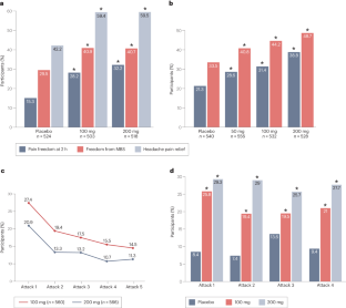 Croop, R. et al. Efficacy, safety, and tolerability of rimegepant orally disintegrating tablet for the acute treatment of migraine: a randomised, phase 3, double-blind, placebo-controlled trial. Lancet 394, 737–745 (2019).