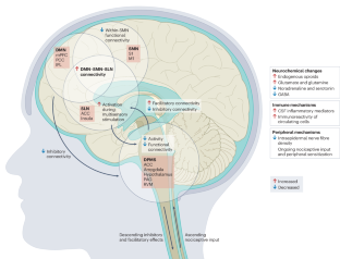Alterations in the central nervous system, particularly in brain regions situated within the default mode, salience and somatosensory networks, have been reported in many chronic pain conditions with nociplastic features.