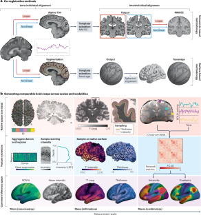 The data used to generate Fig. 1a are available as part of the MICA-MICs dataset (https://osf.io/j532r/)20. For subpanels displayed in Fig. 1b, Fig. 3a (bottom) and Fig. 3c, ultrahigh resolution 7 T MRI data are available as part of the MICA-PNI dataset (https://osf.io/mhq3f/)207. Histological data sampling cortical cyto-architecture are available via BigBrain25 (raw data: https://bigbrain.loris.ca) and BigBrainWarp (processed data: https://github.com/caseypaquola/BigBrainWarp)74. Gene expression data are provided by the Allen Human Brain Atlas (raw data: https://human.brain-map.org/)27. These data were processed with abagen, available via GitHub at https://github.com/rmarkello/abagen (ref. 96) and are made available in the ENIGMA toolbox via GitHub at https://github.com/MICA-MNI/ENIGMA (ref. 19). Data and analysis tools to reproduce Fig. 2 are available in neuromaps via GitHub at https://github.com/netneurolab/neuromaps (ref. 18).