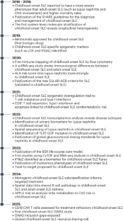 Treatments for childhood-onset SLE increasingly include biologic drugs and targeted therapies, although access remains limited; ongoing trials and approval of paediatric-specific treatments and guidelines are essential for therapeutic equity.