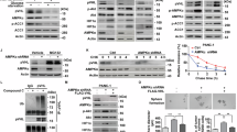 a. MTS proliferation assay shows that A2058-TET2WT cells grew significantly more slowly under normal glucose than under high glucose, but mock cells showed no difference; n = 5 biologically independent repeats, P = 5.68 × 10−5. b, TET2 was effectively knocked down (KD) in TF-1 cells, as confirmed by western blot (left) and RT–qPCR (right). c, TF-1 TET2 KD cells exhibited cytokine-independent growth under no cytokines, consistent with a previous report26. d, Proliferation of TF-1 shControl and shTET2 cells treated with high or normal glucose under the indicated cytokine concentrations. TF-1 shControl proliferation was slower under the lower glucose condition, but TF-1 shTET2 cells showed no differential growth rates. P values (from left to right) are 0.0078, 1.94 × 10−5, 3.21 × 10−4, 0.0011, and 0.0091. a and d suggest that TET2 is a crucial point through which glucose levels affect tumour growth rates. n = 3 biologically independent repeats in b–d. e, Left, dot blot showing 5hmC levels in A2058-TET2WT, A2058-TET2S99A and mock cells with (+) and without (−) metformin (5 mM) treatment. Right, normalization of n = 5 biologically independent dot blot repeats; P = 0.026. f, MTS proliferation assay of A2058 cells expressing TET2WT, TET2S99A or mock treated with (+) or without (−) metformin (5 mM); n = 5 biologically independent repeats, P = 7.18 × 10−5. g, h, Soft agar growth of A2058-TET2WT, A2058-TET2S99A and mock cells treated with 0 mM, 2 mM or 4 mM metformin (g) and respective colony counting (h). P = 6.99 × 10−5 (top), 0.004 (middle), 0.0013 (bottom). i, j, mRNA (i) and protein (j) levels in MDA-MB-231 cells stably expressing mock, TET2WT or TET2S99A. k, l, Soft agar growth (k) and quantification (l) of MDA-MB-231 cells stably expressing mock, TET2WT or TET2S99A; n = 3 biologically independent repeats. The data suggest that TET2WT suppresses anchorage-independent tumour cell growth in vitro. Prevention of TET2 phosphorylation at S99 results in loss of this TET2-mediated suppression. Two-sided Student’s t-test, data shown as mean ± s.d. *P < 0.05, **P < 0.01, ****P < 0.0001.