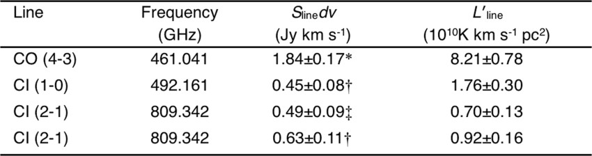 Extended Data Table 1 Line fluxes in AzTEC-1