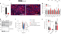 a, Immunoblotting of SLC25A44 in human brown adipocytes expressing a scrambled control shRNA (Scr) and shRNAs targeting SLC25A44 (#1, #2). β-actin as a loading control. b, mRNA expression of SLC25A44 normalized to TBP levels in a. n = 3 per group. c, Noradrenaline-induced OCR normalized to total protein (μg) in the presence and absence of Val supplementation in a. Differentiated human brown adipocytes in the BCAA-free medium were supplemented with Val or vehicle, and subsequently treated with noradrenaline. n = 9 per group (Scr control, sh-Slc25a44 #1), n = 10 per group (sh-Slc25a44 #2). d, Mean noradrenaline-induced OCR in c. e, Illustration of Val metabolism in the mitochondria. f, Immunoblotting of mitochondrial proteins (as indicated) in the interscapular BAT of control and Slc25a44-KD mice. GAPDH as a loading control. g, ETC activity of BAT mitochondria. Isolated mitochondria from BAT of control mice and Slc25a44-KD mice were treated with rotenone (2 μM), succinate (10 mM), antimycin A (5 μM) and TMPD (100 μM) with ascorbate (Asc, 10mM). n = 5 per group. h, mRNA expression of Slc25a44 normalized to 36B4 in mouse beige adipocytes expressing an empty vector (n = 3) or Slc25a44 (n = 4). i, Mitochondrial Val uptake in beige adipocytes in h. n = 3 per group. j, Noradrenaline-induced OCR in h. Differentiated adipocytes in the BCAA-free medium were supplemented with Val or vehicle and subsequently stimulated with noradrenaline. Vector: n = 20 (vehicle) and 16 (Val). Slc25a44: n = 13 (vehicle) and 16 (Val). k, Immunoblotting of SLC25A44 in C2C12 myotubes expressing an empty vector or Slc25a44. β-actin as a loading control. l, Val oxidation normalized to total protein (μg) in C2C12 myotubes in k. n = 6 per group. m, OCR normalized to total protein (μg) in C2C12 myotubes in k. n = 9 per group. b–d, g–j, l, m, Biologically independent samples. Data are mean ± s.e.m.; two-sided P values by unpaired Student’s t-test (h, i, l, m), one-way (b) or two-way (d, j) factorial ANOVA followed by Tukey’s post hoc test, or two-way repeated measures ANOVA (c, g). a, f, k, Representative results from two independent experiments. Uncropped immunoblot images are available in Supplementary Fig. 1.