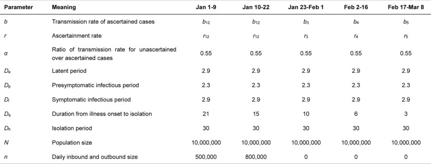 Extended Data Table 2 Parameter settings for five periods in the main analysis