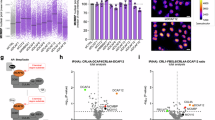 a, Quantification of MFI of cytoplasmic MCM5 and MCM7. b, QIBC of MCMBP-knockout cells ectopically expressing MCMBP–tGFP or MCMBP(∆NLS)–tGFP stained with indicated MCMs without pre-extraction. Lines denote medians; n ≈ 3,000 cells per condition. c, Left, representative images of MCMBP-knockout cells transiently expressing MCMBP–tGFP variants. Scale bar, 20 μm. Right, quantification of nuclear/cytoplasmic ratio of MCMBP–tGFP. d, tGFP IP followed by immunoblotting of U2OS cells or their derivative transiently expressing MCMBP variants. e, Quantification of nuclear/cytoplasmic ratio of MCM4 and MCM5. f, Whole-cell extracts from U2OS and MCMBP-knockout cells (clones 1 and 2) immunoblotted with indicated antibodies. g, qPCR analysis of mRNA levels for MCM2, MCM5 and MCM7 in indicated cells, normalized to control cells (100%). Data represents mean ± s.d.; n = 4 technical replicates. h, Immunoblotting of U2OS and MCMBP-knockout cells treated with control siRNA or siRNA against PSMD14. i, Top, MFI of cytoplasmic MCM4 and MCM2 for indicated cells treated with DMSO or MG132 (2 μM; 6 h) or siRNA against PSMD14 as indicated. Bottom, QIBC of indicated cells treated with DMSO or MG132 (2 μM; 6 h) or siRNA against PSMD14 and stained for MCM2 or MCM4 without pre-extraction. Lines denote medians. Left, n ≈ 7,000 cells per condition; middle, n ≈ 10,000 cells per condition; right, n ≈ 4,700 cells per condition. In box plots (a, c, e, i), centre lines are medians, the boxes indicate the 25th and 75th centiles, the whiskers indicate 5 and 95 per cent values. P values were determined by one-way ANOVA with Tukey’s test, not significant (n.s.) denotes P > 0.05; n = 500 cells per condition (a, i) and n = 100 cells per condition (c, e). Gel source data for d, f, h are provided in Supplementary Fig. 1.