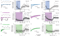 a, Left, the C. elegans egg-laying neuronal circuit44. The hermaphrodite-specific neuron (HSN) extends an axon across the vulval region, making specific synaptic contacts with vm1/2 vulval muscles and inhibitory VC4/5 motor neurons. Right, experimental setup. HSN is activated by channelrhodopsin ChR2 with blue light, while contraction of the vm2 muscle is measured with the Ca2+ sensor GCaMP5 (ref. 21). b, Representative vulval-muscle Ca2+ traces, detected by GCaMP5, in the indicated genotypes. ‘−ATR’ conditions lacked the essential ChR2 cofactor all-trans retinol. c, Quantification of the Ca2+ spike frequency, measured using GCaMP5, in the indicated genotypes. Data are means ± 95% CI from independent animals, with comparisons made using one-way ANOVA and Dunnett’s test.