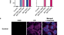 HEK293T cells were transfected with 1 μg RiboJuice transfection reagent-mixed BNT162b1 RNA or BNT162b2 RNA, or with the vaccine candidates BNT162b1 (lipid-nanoparticle-formulated BNT162b1 RNA) or BNT162b2 (lipid-nanoparticle-formulated BNT162b2 RNA) by incubation for 18 h. Non-lipid-nanoparticle-formulated mRNA was diluted in Opti-MEM medium (Thermo Fisher Scientific) and mixed with the transfection reagent according to the manufacturer’s instructions (RiboJuice, Merck Millipore).