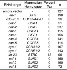 Extended Data Table 2 Penetrances of the Tex phenotype produced in wild-type animals by RNAi against cell-cycle genes with potential roles in cell extrusion