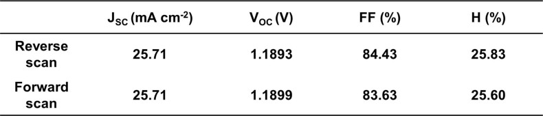 Extended Data Table 1 All parameters determined from the J-V curve of Fig. 4c.