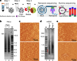 a, Summary of eccDNA short read sequencing without RCA. Purified eccDNA was directly tagmented with Tn5 (Illumina Nextera), and sequenced with Illumina Hiseq 2500 in PE150 mode. b, Chromosomal distribution of eccDNA short reads.