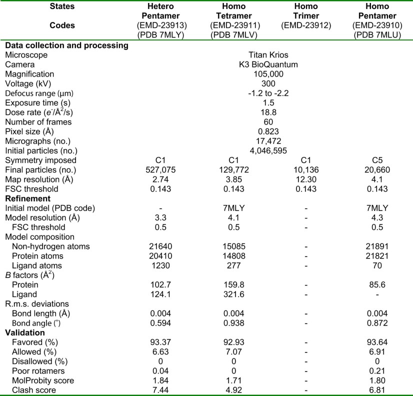 Extended Data Table 1 Statistics for 3D reconstruction and model refinement