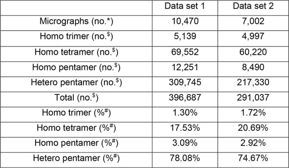 1. Notes: * Number of micrographs. $ Number of particles kept for the final reconstruction.