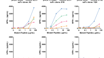 Normal donor monocytes were plated on day 1 in 6-well plates at 5 × 106 cells per well in RPMI-10 FBS supplemented with 10 ng ml−1 IL-4 (Peprotech) and 800 IU ml−1 GM-CSF (Peprotech) and incubated at 37 °C overnight. On day 2, fresh medium supplemented with 10 ng ml−1 IL-4 and 1,600 IU ml−1 GM-CSF was added to the monocytes and incubated at 37 °C for another 48 h. On day 4, non-adherent cells were removed, and immature dendritic cells washed and pulsed with 5 µM peptide in AIM-V-10% FBS supplemented with 10 ng ml−1 IL-4, 800 IU ml−1 GM-CSF, 10 ng ml−1 lipopolysaccharide (Sigma-Aldrich), and 100 IU ml−1 IFN-γ (Peprotech) at 37 °C overnight. Day 1 was repeated on days 4 and 8 to generate dendritic cells for the second and third stimulations on days 8 and 12, respectively.