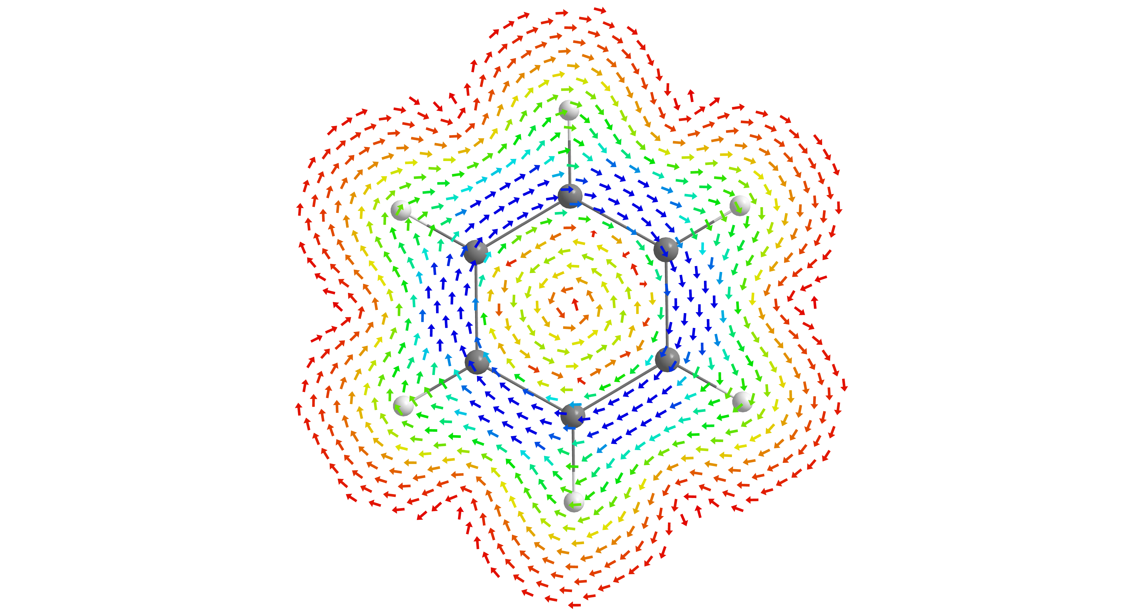 - In aromatic species like benzene the stronger diatropic current forms on the outer edge of the molecule. I left benzene in the SI for comparison. I presumably should have left it in the manuscript to avoid this misunderstanding. See the figure below.