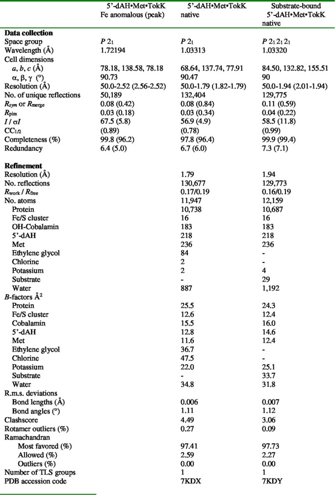 Extended Data Table 1 X-ray crystallographic data collection and refinement statistics