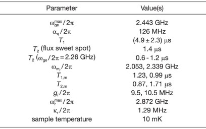 1. Parameters of the qubit, mechanical modes and readout resonator.