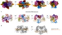 a–d, pre-TCRC modelling. a, PDB files of E. coli ECs were downloaded and prepared by extracting chains corresponding to RNAP subunits and NusA, then refined using YASARA Structure. E. coli UvrA was modelled using the homology template server I-TASSER. b, UvrA was docked to ECs using PatchDock, with the RNAP-UvrA cross-links as distance restraints. c, PDB coordinates file of E. coli UvrD in the apo form was trimmed to the first 640 residues and refined, then docked to the top EC-UvrA (as ranked by cross-link satisfaction) from the previous step. d, EC-UvrA-UvrD complexes generated in the previous step were ranked by RNAP–UvrD cross-link satisfaction and used as receptors to dock UvrD CTD. Results were clustered using ProFit (v.3.1), and finally analysed for the UvrAD DNA-binding regions alignment with the DNA path in the EC. e–g, TCRC modelling. e, Same as a. Docking was repeated using EC-UvrA1 complexes as receptors and additional UvrA-UvrA distance restraints to generate EC-UvrA12 complexes. f, Same as (c). Structure then docked to the top EC-UvrA12 complexes generated in the previous step, as ranked by RNAP-UvrA and UvrA-UvrA cross-link satisfaction. g, Top EC-UvrA12-UvrD complexes generated in the previous step were divided into two groups based on the docked UvrD model (apo vs. closed), and used as input to the dimer-assembly component (Extended Data Fig. 11 and Methods). UvrD poses from the two groups were cross-matched to generate EC-UvrA12-UvrD12 complexes, analysed for UvrD-UvrD cross-link satisfaction and steric clashes, and used as receptors to dock UvrD1 CTD. Results were clustered using ProFit (v.3.1) and analysed for agreement with UvrA-dimer structures and alignment of Uvr DNA-binding regions with the DNA path in the EC. Final complexes were refined with YASARA Structure and re-analysed with Jwalk for cross-link satisfaction.
