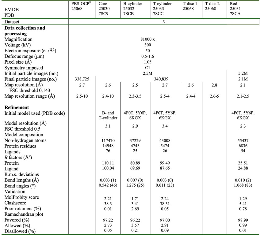 Extended Data Table 2 Cryo-EM data collection, refinement and validation statistics of OCP–PBS