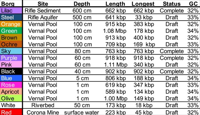 Extended Data Table 1 Manually curated complete and draft genomes for the best sampled Borgs