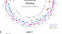In addition to the Nucleocytoviricota and mirusvirus MAGs characterized in our study, we included marine Nucleocytoviricota MAGs characterized using automatic binning in ref. 11 (n = 743) and ref. 12 (n = 444), in part using Tara Oceans metagenomes. We also incorporated 235 reference Nucleocytoviricota genomes mostly characterized by means of cultivation but also cell sorting within plankton53. We determined the average nucleotide identity of each pair of Nucleocytoviricota or mirusvirus MAGs using the dnadiff tool from the MUMmer package54 v4.0b2. MAGs were considered redundant when their average nucleotide identity was >98% (minimum alignment of >25% of the smaller MAG in each comparison). Manually curated MAGs were selected to represent a group of redundant MAGs. For groups lacking manually curated MAGs, the longest MAG was selected. This analysis provided a non-redundant genomic database of 1,593 marine MAGs plus 224 reference genomes, named the GOEV database. We created a single contigs database for the GOEV database using anvi’o. Prodigal43 was used to identify genes.
