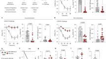 For mast cell depletion, sensitized RMB mice were injected intraperitoneally (i.p.) with 0.05 mg kg−1 of diphtheria toxin (Sigma-Aldrich D0564) three times every other day as previously described54, starting on day 28 after the first allergic sensitization. As this protocol was efficient at depleting mast cells even in heterozygous RMB mice, we used both heterozygous and homozygous mutants as mast cell-depleted models.