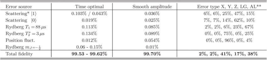 Extended Data Table 1 Simulated error budget for two-qubit CZ gates