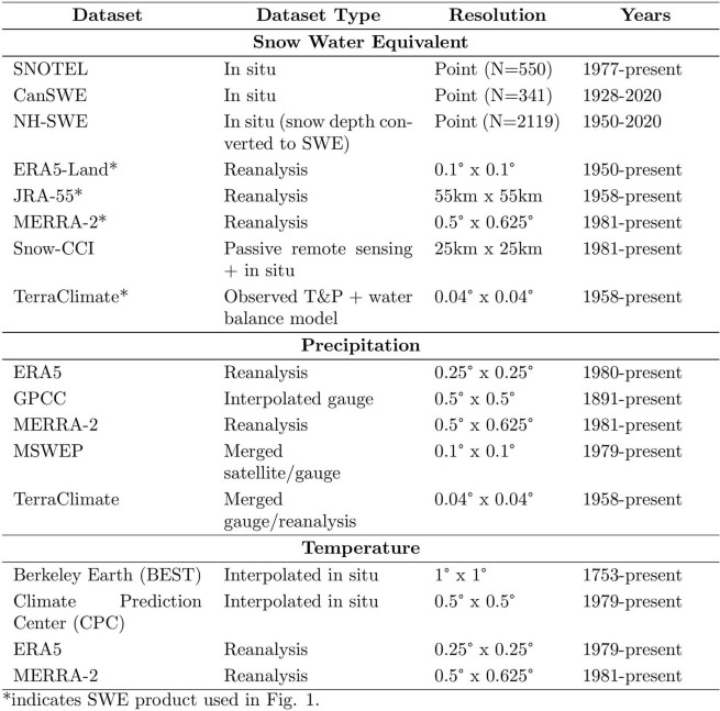 Extended Data Table 1 Summary of observational data products used in the analysis