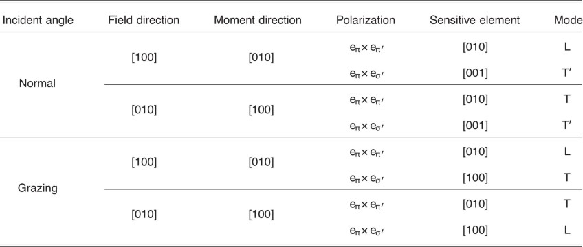 Extended Data Table 1 Sensitive mode for each combination of specific scattering geometry and field direction in RIXS measurements on Sr2IrO4