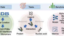 These successes lead to the question of whether it is possible to accurately predict the structure of complexes containing a much wider range of biomolecules, including ligands, ions, nucleic acids and modified residues, within a deep-learning framework. A wide range of predictors for various specific interaction types has been developed16,17,18,19,20,21,22,23,24,25,26,27,28, as well as one generalist method developed concurrently with the present work29, but the accuracy of such deep-learning attempts has been mixed and often below that of physics-inspired methods30,31. Almost all of these methods are also highly specialized to particular interaction types and cannot predict the structure of general biomolecular complexes containing many types of entities.