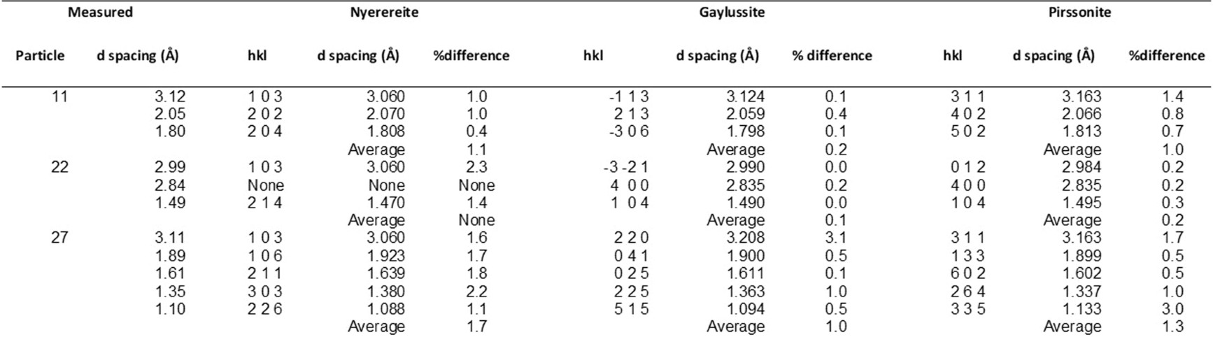 Extended Data Table 1 Measured d-spacing (Å) for three Na,Ca carbonates from OREX-800045-102