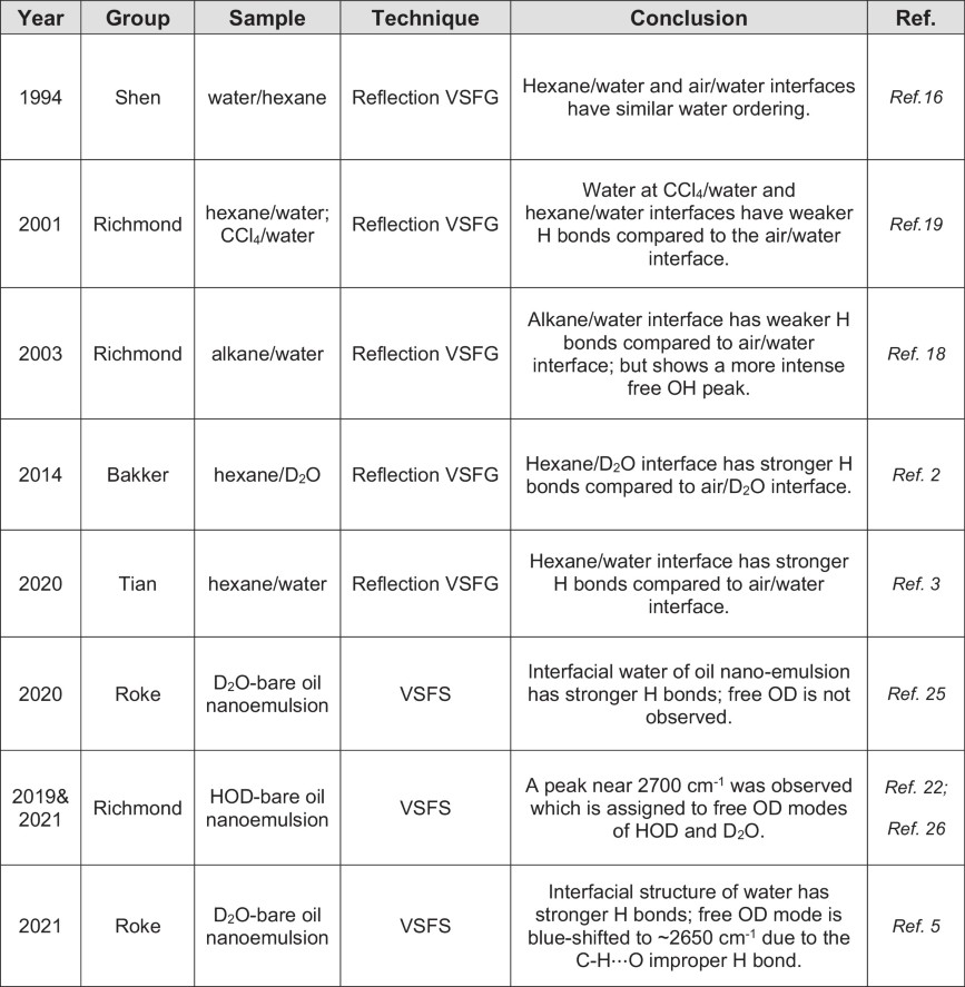 Extended Data Table 1 A literature overview on the structure of interfacial water by second-order optical spectroscopy
