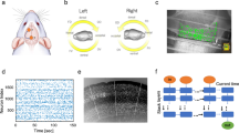We acquired video of the mice behaving using two infrared cameras (Extended Data Fig. 1a). The first infrared camera acquired the behaviour continuously at 30 frames per second (fps; Supplementary Videos 1–12). This camera sent the video to a DVR that logged the video onto a micro-SD card. The second infrared camera (Flea3 FLIR) acquired the behaviour at a higher frame rate: 255 fps. This high-speed camera acquired chunks of video beginning 1 s before each cue and continuing for 7.5 s after each cue with a gap in video acquisition between trials. This high-speed camera logged the video to a computer running the acquisition software FlyCapture2.