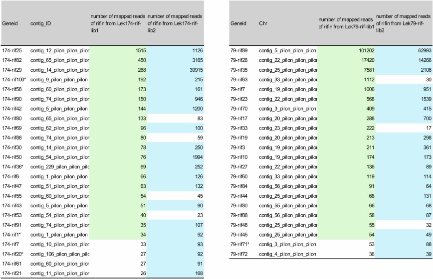 Extended Data Table 2 The list of KIR2DL1-binding RIFIN candidates identified from Lek174-rif-lib and Lek79-rif-lib