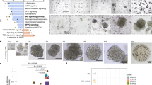 Mesenchymal cells were cultured in the basal medium described above supplemented with Wnt-CM (30%) and 10 μM ROCK inhibitor (Y-27632, Merck/Sigma, Y0503), as described20. Cells were passaged at 1:3 and 1:2 ratios, through enzymatic digestion using TrypLE Express (ThermoFisher, 12605010) for 5 min at 37 °C. Mesenchymal cells were cultured at 37 °C and 5% CO2. For 3D culture in Matrigel, mesenchyme cells were seeded in Matrigel at density 2,500 cells per 25 μl Matrigel in a 48-well plate as the sparse condition, overlaid with medium. Alternatively, for the confluent/aggregated 3D condition, 2,500 mesenchyme cells were placed in a well of a low-attachment 24-well plate in 0.5 ml of medium supplemented with 1× methylcellulose (Sigma, M6385) and the plate was transferred to a rocker-shaker (Biosan, MR-1), incubated at 10 rpm for 18–24 h at 37 °C and 5% CO2. Mesenchyme aggregates were collected into 1.5 ml Eppendorf tube, spun down for 5 min at 200g and seeded in Matrigel as described above and overlaid with medium.