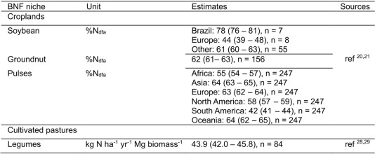Extended Data Table 2 Niche-specific estimates of BNF activity per unit of N fixer abundance in agricultural systems
