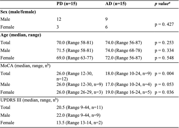2. bNumber (n) of donors for whom variable information was available. Information for remaining variables was available for all donors. UPDRS (III): Unified Parkinson’s Disease Rating Scale, part III. MoCA: Montreal Cognitive Assessment.