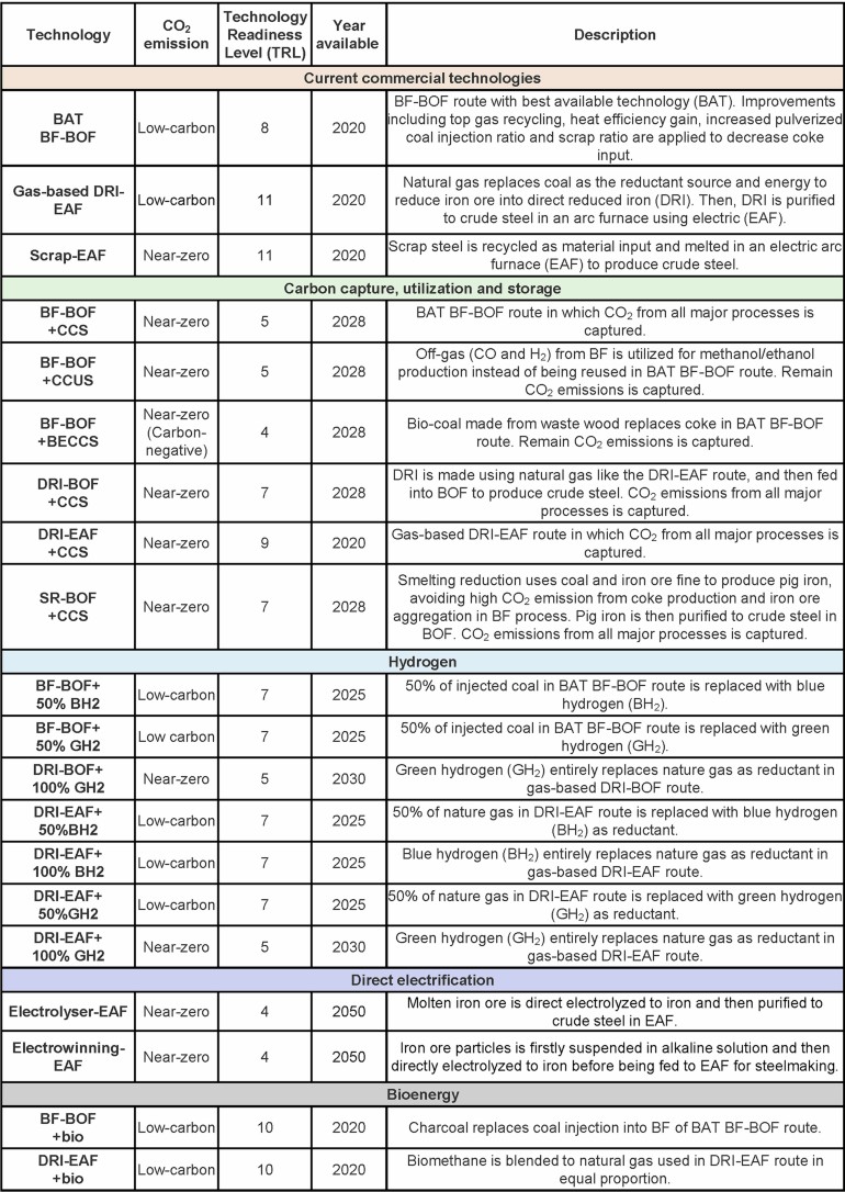 Extended Data Table 1 Promising low-carbon and near-zero emission technologies in the iron and steel sector