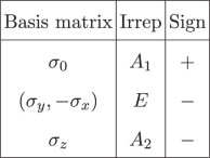 1. Each basis matrix is an irreducible tensor operator belonging to the irrep given in the second column. The sign under time reversal is also given.
