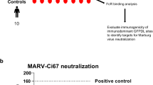 Mice were randomized to form six groups (n = 10 mice per group) with equal numbers of male and female mice. On study days 0, 28 and 56, 0.1 µg, 1 µg or 10 µg of MARV GPΔMucWT or MARV GPΔMucPV diluted in TBS was mixed with InvivoGen Addavax at a 1:1 volume ratio for a total injection volume of 100 µl. The mice were intramuscularly immunized in both quadriceps (50 µl per quadricep). On study days −7, 14, 42 and 70, blood was collected from each animal in serum-separator tubes. The resulting serum was stored at −80 °C until use.