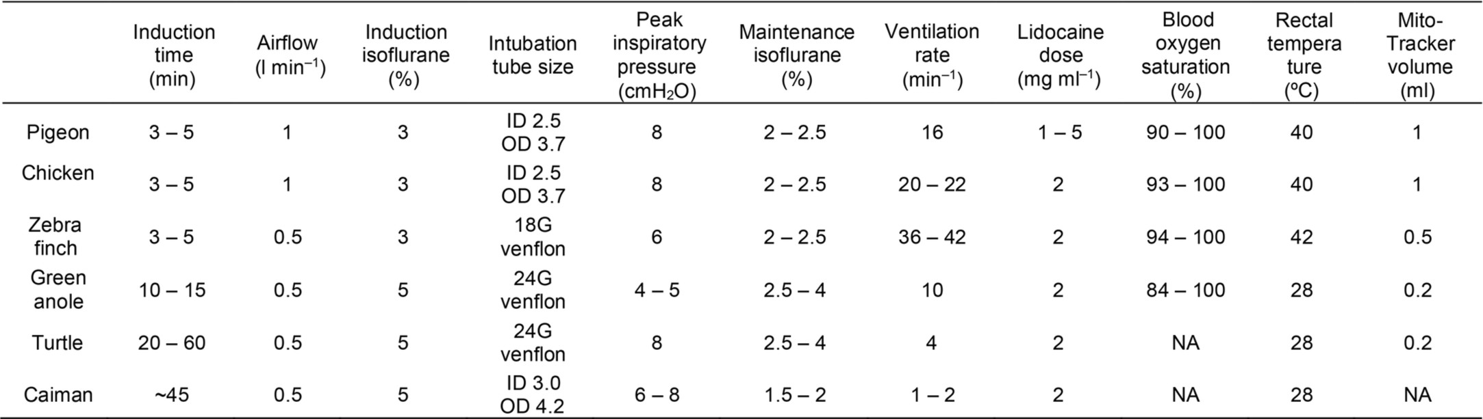 Extended Data Table 1 Summary of species-specific anaesthesia and instrumentation
