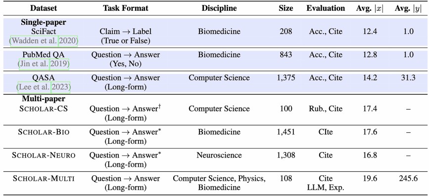 Extended Data Table 1 Overview of ScholarQABench datasets and evaluation protocols