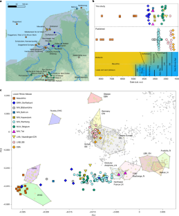We thank N. Adamski, N. Broomandkhoshbacht, E. Curtis, I. Greenslade, K. Stewardson and F. Zalzala for laboratory work; the staff at the Provinciaal Depot voor Archeologie van Noord-Holland (M. Veen and R. van Eerden), Provinciaal Archeologisch depot Zuid-Holland (I. Riemersma and M. Phlippeau), Archeologisch Depot Gelderland (S. Weiss-König), Provinciaal Archeologisch Depot Flevoland (Tineke Roovers), and National Museum of Antiquities Leiden (L. Amkreutz) for granting permission to sample ancient remains and assistance in sampling; T. Grange and E.-M. Geigl for facilitating access to Bréviandes genomic data. The aDNA data generation and analysis was supported by the National Institutes of Health (R01-HG012287); the John Templeton Foundation (grant 61220); a private gift from J.-F. Clin; the Allen Discovery Center program, a Paul G. Allen Frontiers Group advised program of the Paul G. Allen Family Foundation; the Howard Hughes Medical Institute (D.R.); grant RYC2019-027909-I and project PID2022-140886NA-I00 funded by MCIN/AEI/10.13039/501100011033, “ESF Investing in your future” and FEDER, UE (I.O.); the Basque Government under “Grupos Consolidados” grant no. IT1633-22 (I.O.); NWO-VIDI grant “The Talking Dead” VI.VIDI.191.149 (Q.B.); the Max Planck Society, by the French Research Foundation and German Research Foundation (to M.R., W.H. and M.-F.D., project INTERACT, ANR-17-FRAL-0010 and DFG-HA-5407/4-1, 2018-21); and the Leverhulme Trust (A.F., F.G., C.J.E., M.B.R., M.P.). The accepted version of this article (before the editing, proofreading and formatting changes following the paper being accepted) is subject to the Howard Hughes Medical Institute (HHMI) Open Access to Publications policy; HHMI laboratory heads have previously granted a non-exclusive CC BY 4.0 licence to the public and a sublicensable licence to HHMI in their research articles. Pursuant to those licences, the accepted manuscript can be made freely available under a CC BY 4.0 licence immediately after publication.