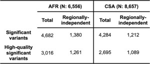Extended Data Table 2 Number of significant associations for height in AFR and CSA