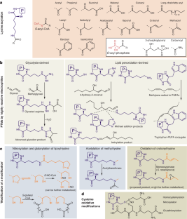Seim, G. L. et al. Nitric oxide-driven modifications of lipoic arm inhibit alpha-ketoacid dehydrogenases. Nat. Chem. Biol. 19, 265–274 (2023). This study shows that the production of reactive nitrogen species and cellular metabolic changes are linked via covalent modification of a metabolic enzyme-attached lipoyl group, as a representative example of modification-of-a-modification.