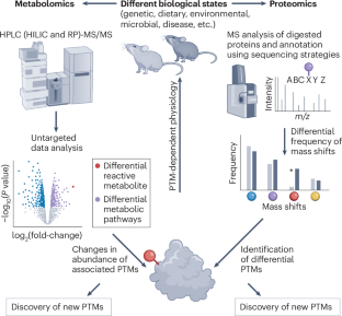 Zhai, Y. et al. Cysteine carboxyethylation generates neoantigens to induce HLA-restricted autoimmunity. Science 379, eabg2482 (2023). This study uses sequencing-based proteomics data analysis algorithms to look for PTM changes in an untargeted manner (that is, the searching is not limited to a short list of known PTMs, as in conventional workflows).