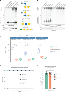 A.H.T., L.C., C.E.C.-S., C.L., R.W. and X.L. planned and performed all chemical syntheses; A.W.D. and K.A.S. cultured H. pylori P12 samples; M.K.-L. and L.Z. cultured H. pylori 26695 samples; M.C. and M.L. performed proteomic analyses of H. pylori P12 flagellin; N.M.S. and C.G. raised/characterized mAbs, collected and analyzed all SPR/BLI data, and performed all protein expression and structural biology; A.P.A., K.D.M. and D.H.D. made H. pylori Pse-knockout strains; N.L.S., R.M.H. and J.J.K. sourced A. baumannii strains with diverse K types; L.M.W., C.M. and F.L.S. performed all fluorescence-activated cell sorting experiments; A.L.D. and S.J.C. cultured C. jejuni strains and purified flagellin from these samples; K.I.K. and N.E.S. cultured A. baumannii strains and performed in vitro infection assays; K.I.K., N.M.S. and N.E.S. performed glycopeptide enrichments and glycoproteomic analyses; L.L., G.P.C. and B.P.H. performed in vivo infection assays; N.E.S., E.D.G.-B. and R.J.P. conceived and coordinated the project, and cowrote the paper.