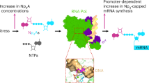 To explore the role of NpnNs in the transcription initiation process, we designed a series of templates with artificial transcription bubbles for use in an IVT assay using the Tt RNAP-σA holoenzyme26. The templates were designed on the basis of previous work27,28 (Fig. 1, Extended Data Table 1, Supplementary Table 1 and Supplementary Fig. 1), having combinations of C and/or T at positions −1 and +1 of the template strand with respect to the TSS. We then performed radioactively labeled IVT reactions using these templates with four regular NTPs in combination with NpnNs (Ap3-4A, Ap3-4G and Gp3-4G; Fig. 1b,c). We prepared control experiments where the concentration of NpnNs was replaced by the two respective NTPs (ATP or GTP). Each control contained the same total final concentration of initiating nucleotides (Supplementary Table 2).