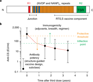White, M. T. et al. Immunogenicity of the RTS,S/AS01 malaria vaccine and implications for duration of vaccine efficacy: secondary analysis of data from a phase 3 randomised controlled trial. Lancet Infect. Dis. 15, 1450–1458 (2015).