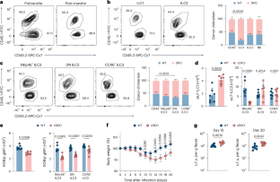 Extended Data Fig. 2 An altered ILC3/ILC1 ratio increases susceptibility to C. rodentium infection.